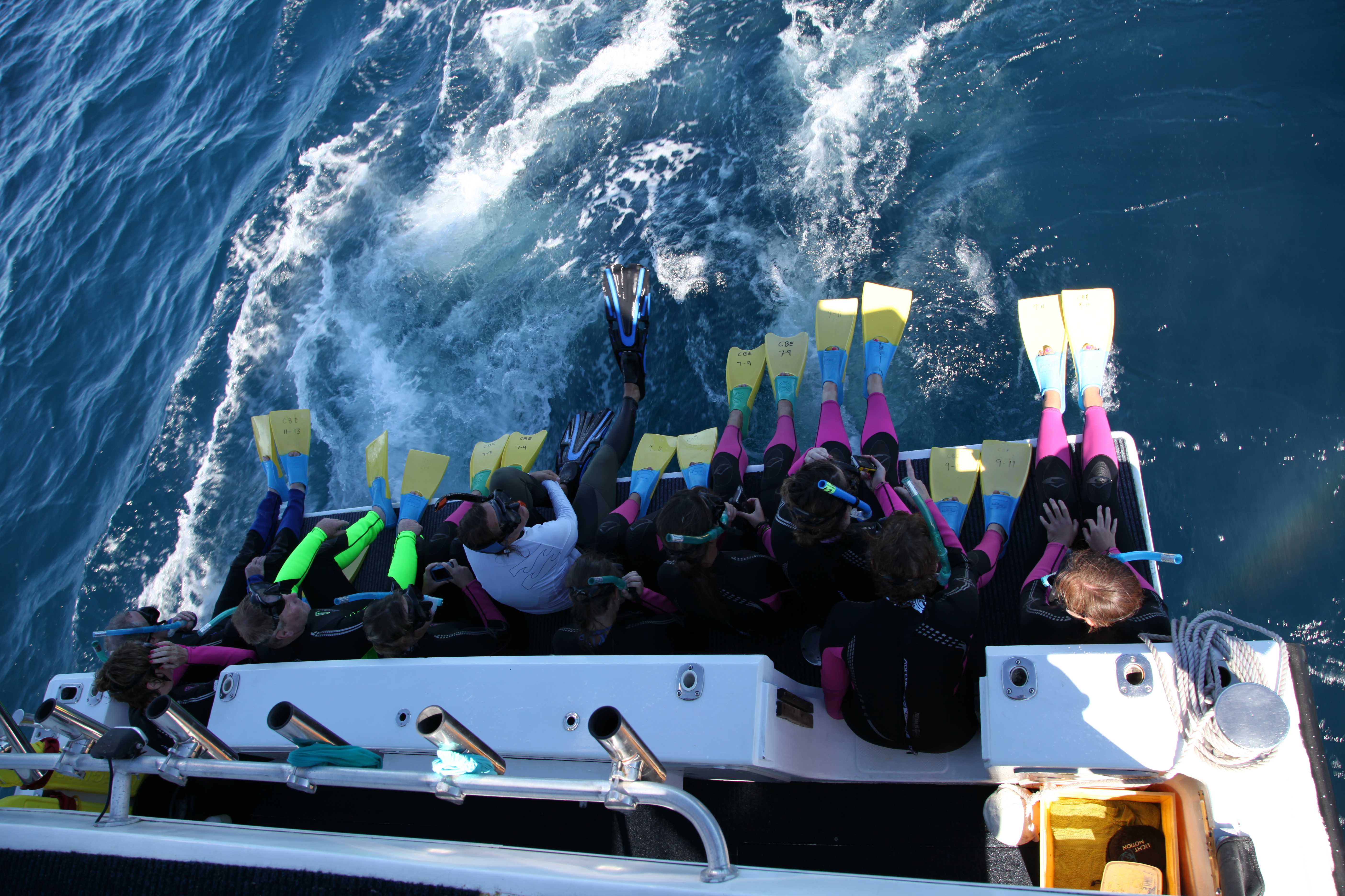 Finally our Whale Shark day had arrived and we were up early and ready for our pick up to go to the marina. The weather was still awful and now the wind was accompanied by driving rain, but we were still keen to go no matter what! Our pick up time came and went and after an hour we decided that the trip must have been cancelled due to the conditions, we had no way of knowing as there is no phone signal, so feeling deflated we packed up the tent and left the camp – we weren’t sure when the next trip would go out and we really needed to start heading south. We drove 40km to the nearest phone box and rang the tour operator to work out what to do next. What followed was the most infuriating conversation, establishing that no, the trip had not been cancelled, we had simply been told the wrong pick up point!’ The blasé nature of the tour operator only fuelled the fire, insisting that we had got it wrong, not her. Raging by this point, that not only had we stuck it out in the wild weather for this trip and were now facing the possibility of missing out on a lifelong dream and hadn’t even had an apology we hung up the phone and headed the 80kms back to Exmouth to the office to have it out. Fortunately her manager took over when we arrived but despite her efforts there was no other availability for another 3 days so refunded our trip. We were gutted. Everywhere else was also just as booked up, but remembering that a guy we’d met at the campsite had done the trip from Coral Bay, we called the Eco Tours company down there and to our surprise they had 2 spots left for the next day! The anger soon subsided as we sped down to Coral Bay – so relieved that our Whale Shark experience was back on the agenda.