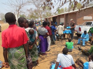 On distribution day, we met with the team early and drove out to a remote village in the Balaka district. By 8am the mercury was already in the late 20’s, it was going to be a sweltering day! By the time we’d arrived, villagers from the surrounding area were already waiting for us, it was time to get the show on the road! Firstly the villagers were given talks about Malaria awareness from a local health officer, what it is, how to prevent it and why the nets are so important. Demonstrations were then given, to show how the net needs to be installed and villagers then had a chance to discuss any issues or questions. The educational part is vital to ensure that they understand why they are receiving nets and deter them from mis-using the nets for fishing, clothing or protecting crops.