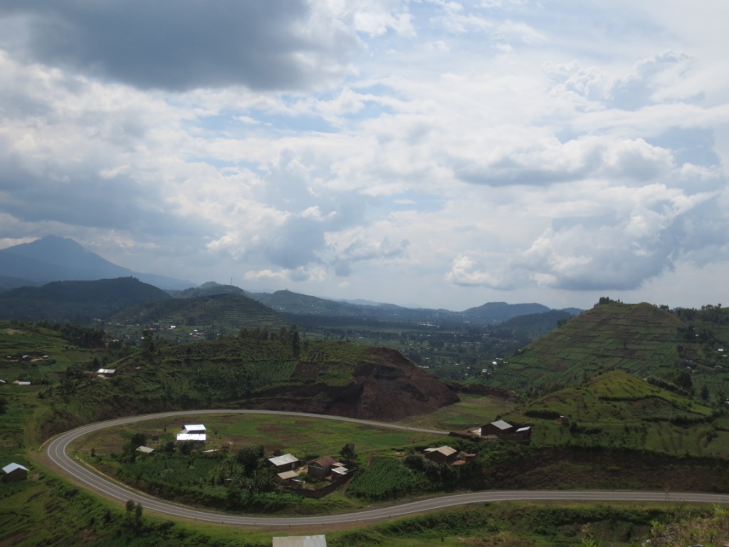 They say that in Uganda, if you a plant a walking stick it will grow. I can believe that! Heading into Uganda across the South Western border with Rwanda, the scenery became even more sensational with the free-standing volcanic mountain peaks providing a dramatic backdrop. With every inch of every hillside packed tightly with crops and vegetables, we saw a green more vibrant than we’ve ever seen before –it was just beautiful. We headed straight for the small, one-horse town of Kisoro to investigate options for gorilla trekking. Kisoro sits at the foot of the Mgahinga National park, the smallest, but probably the most spectacular of parks in Uganda made up of 3 volcanic peaks, where one family of 11 habituated gorillas are resident. The volcanic peaks provide a natural border for 3 countries, Rwanda, Uganda and the DRC. As the smaller, less-well known park we were hopeful that we would be able to book onto a trek within a few days, as tour operators within Rwanda and Bwindi, Uganda insist that bookings must be made months in advance. With only 8 people allowed to spend 1hour with a gorilla group each day, the demand is high. However, it was low season and when we arrived at the parks office we could not have been happier to hear that not only could we go the very next day, it would also just be the 2 of us! That night we excitedly packed up our supplies, we’d heard that depending on where the gorillas are you can be trekking for up to 8hours through steep, jungle terrain so we made sure we’d packed plenty of food and water. Then it was up early to head out to the park, trying to make sense of the very basic map the park ranger had drawn for us the previous day. Having woken with what we thought was plenty of time, we realised that we hadn’t actually checked if the time-zone had changed when we crossed the border. Yep, we were actually an hour ahead, so what should have been a slow drive down rough tracks became a mini Dakar rally to get to the park on time!