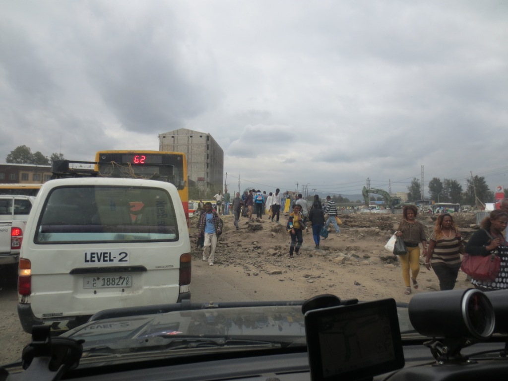 Despite our best plans for sight-seeing in Ethiopia, the car had other ideas. Following the extreme mud on the Marsabit:Moyale road, although the car came through it surprisingly well, the engine had suffered a slight injury as mud had forced its way into the alternator pulley bearing creating a deafening squealing sound which needed to be looked at sooner rather than later. So instead of heading into the lower Omo valley region to see the different ethnic tribes, we headed straight for Addis Ababa. The drive was still beautiful, but the wonderful tarmac we’d been promised soon turned into broken and pot-holed road and to celebrate my birthday we were given another puncture – 2 in 2 days! Standing in the rain by the roadside, fixing a flat tyre on my birthday is not exactly how i’d planned to celebrate another year, but that’s overlanding for you!