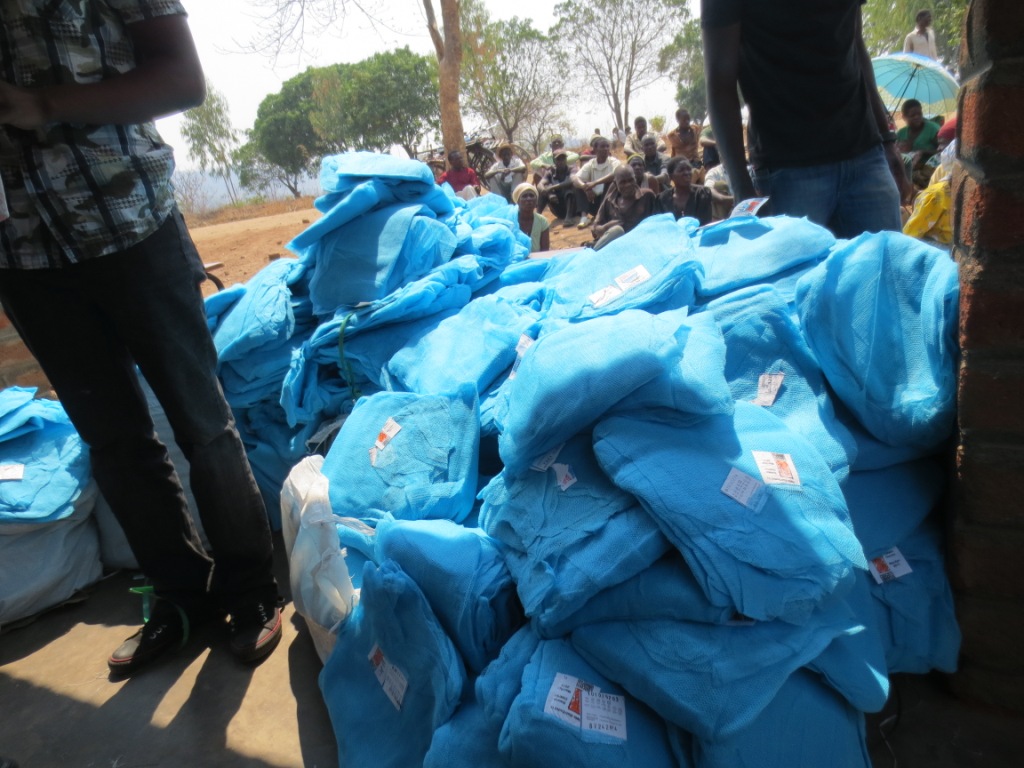 Distributing mosquito nets in Malawi